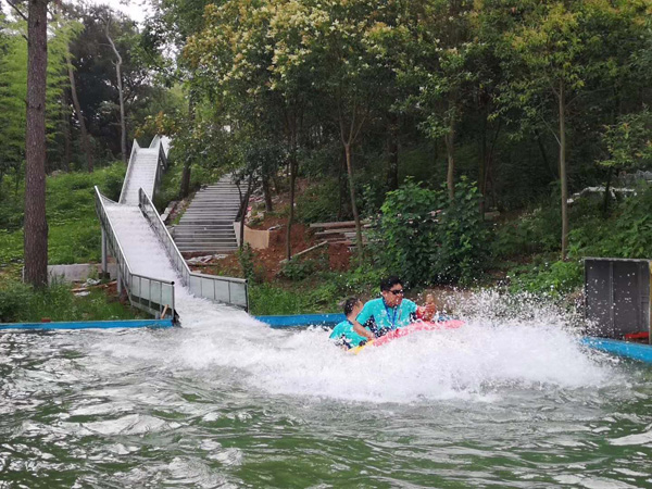 玻璃水滑道設(shè)置有“C”型彎道和緩沖,游客坐在漂流船上不僅可以享受速度與激情的滑行,還可居高臨下欣賞沿途的森林景觀和金牛湖的山水秀色。